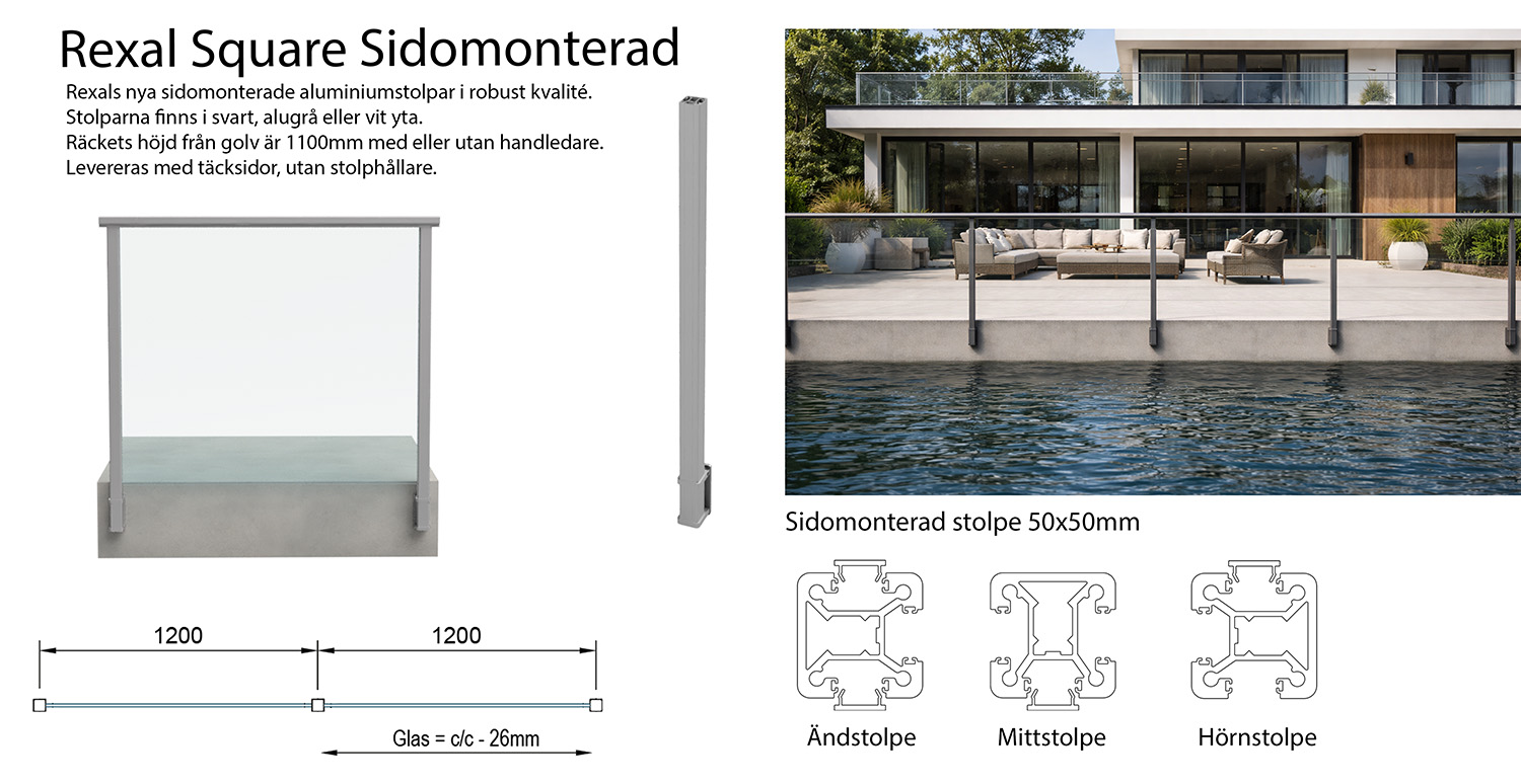 Glasräcken / Rexal Square Alu / Sidomonterad Square